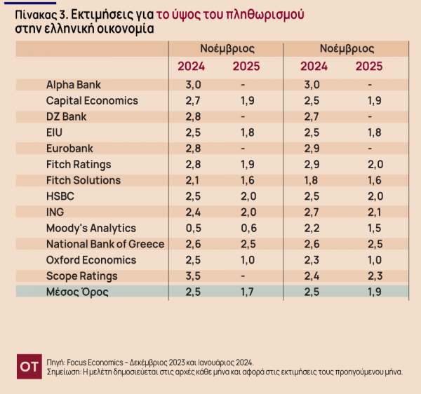 Τι βλέπουν 19 σπίτια για το ΑΕΠ και τον πληθωρισμό στην Ελλάδα τη διετία 2024-2025 [πίνακες]