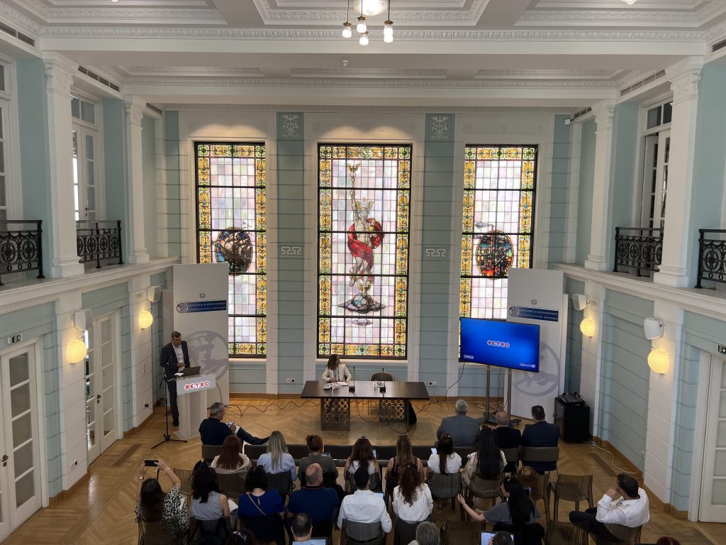 Στιγμιότυπο από την παρουσίαση του Αριστοτέλη Παντελιάδη στο πλαίσιο της παρουσίασης του Ομίλου METRO σε δημοσιογράφους στην αίθουσα του ΕΒΕΑ