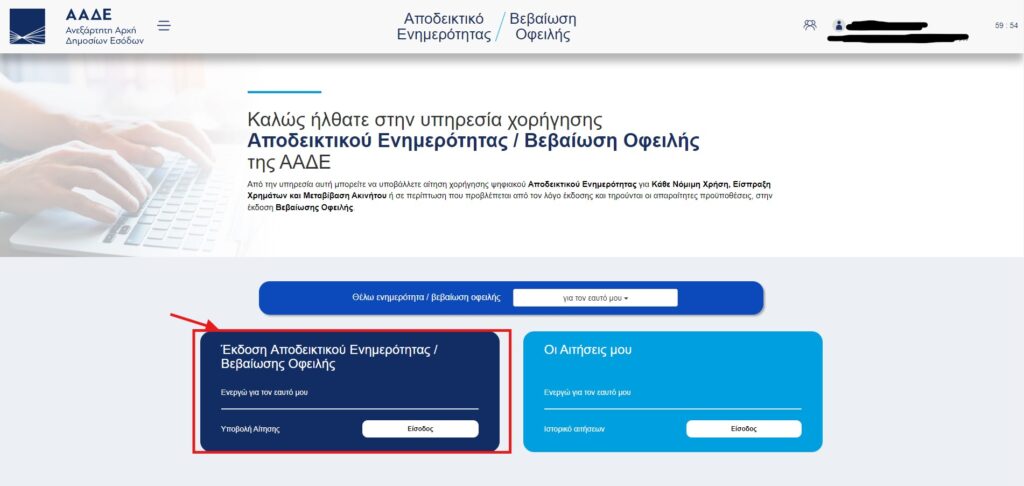 Έκδοση αποδεικτικού ενημερότητας /Βεβαίωσης Οφειλής